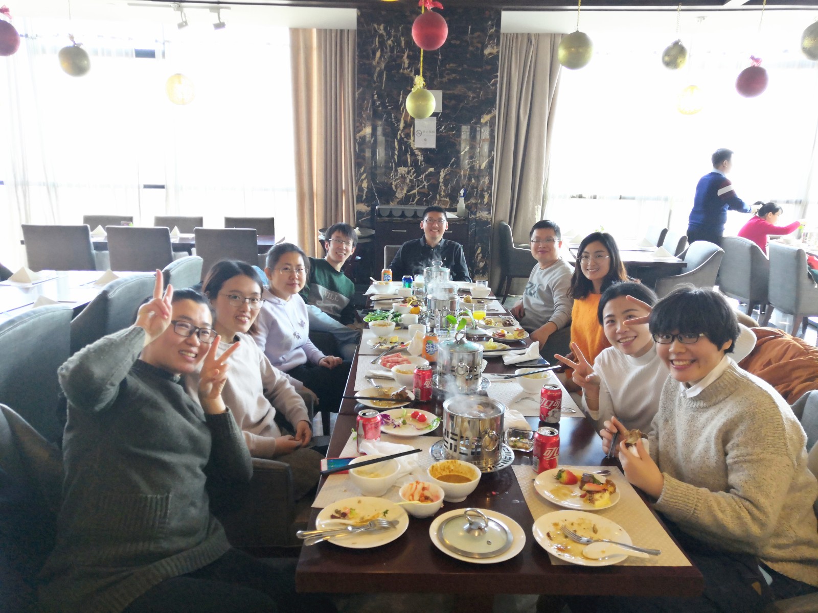 2019年1月27日,放假前的最后一个工作日,大家来到自助餐厅大快朵颐,犒劳辛苦一年的小伙伴们。刚刚过去的2018年,实验室从空荡荡到各种仪器设备逐渐完备,实验人员陆续到齐,自2018年7月16日实验室正式投入运转,大家也从陌生到熟悉再到默契十足一起工作,半年的时间大家似家人也似战友,共同学习,共同进步。