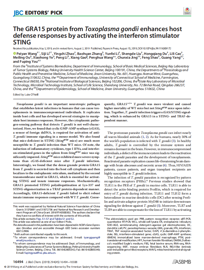 The GRA15 protein from Toxoplasma gondii enhanc...