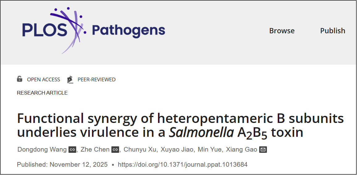 高翔课题组揭示沙门氏菌新型A2B5毒素异源五聚体组...