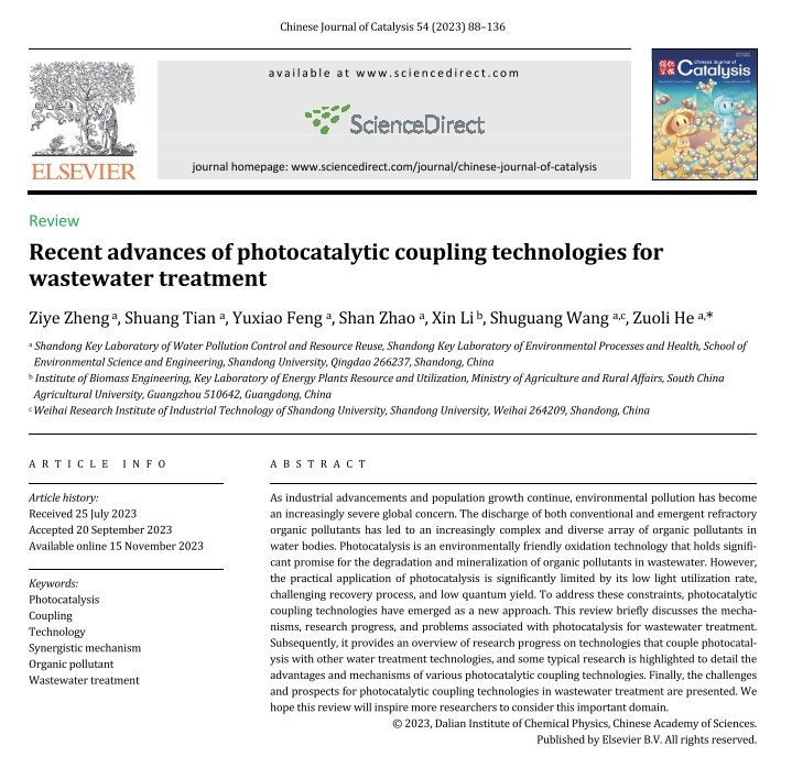 Title of Paper:Recent advances of photocatalytic coupling technologies for wastewater treatment