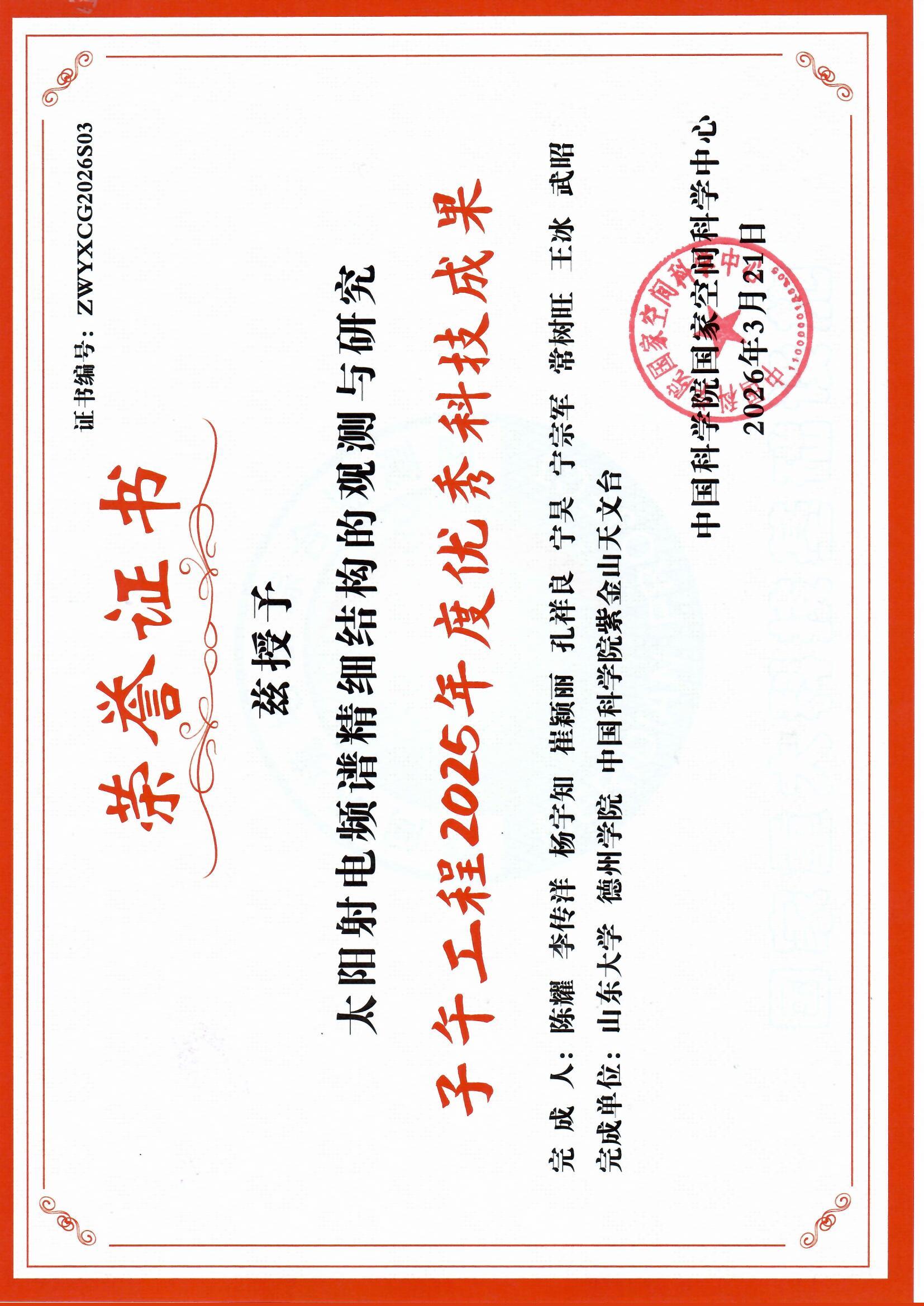 所在单位:空间科学与技术学院