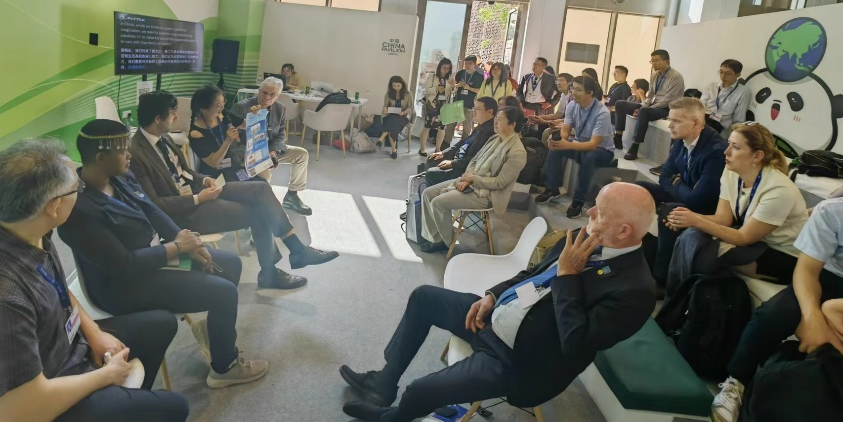 COP28中国角“海洋负排放助力全球碳中和”边会现场,圆桌对谈嘉宾就有关问题展开交流
