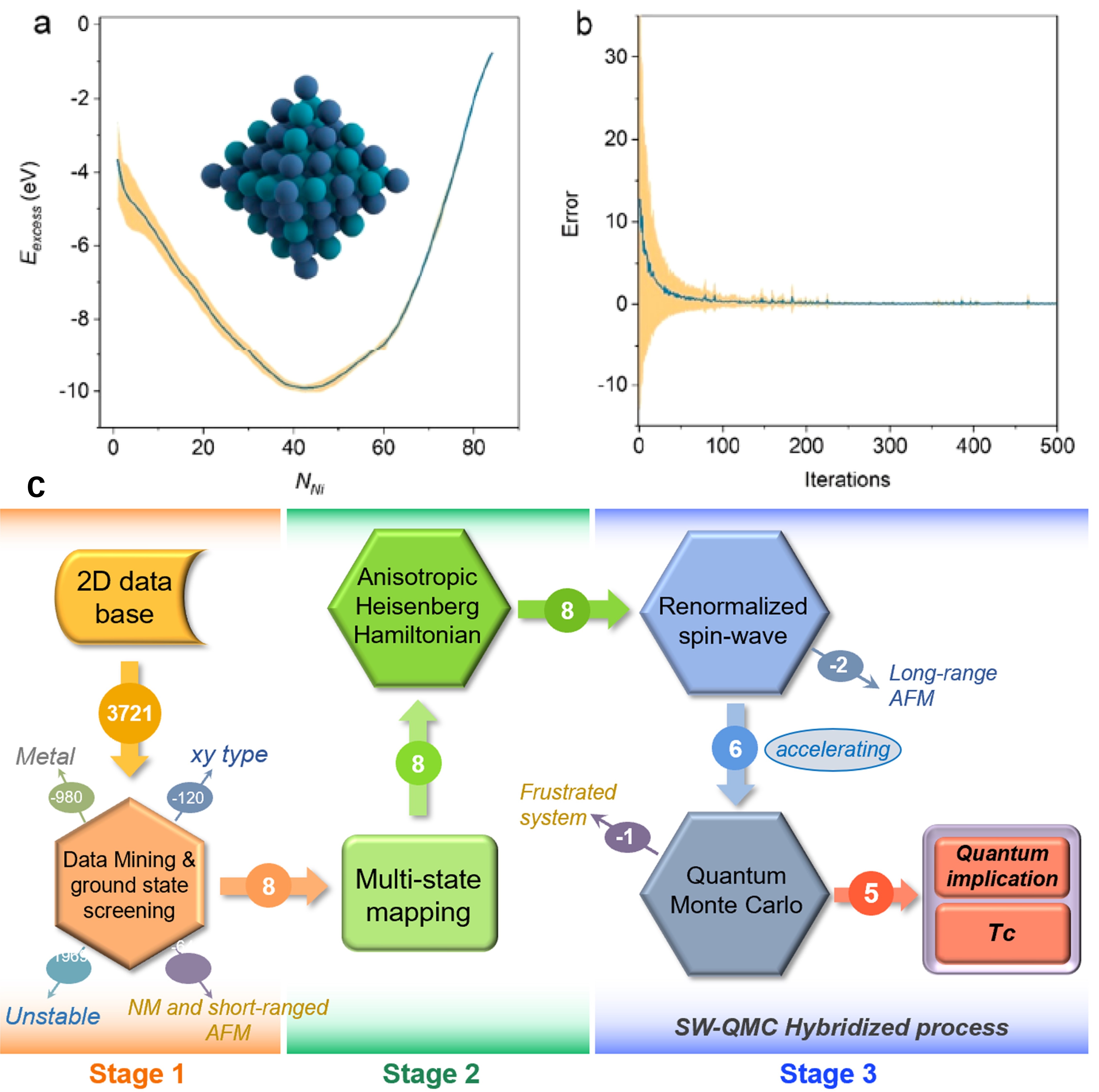 Note:结合机器学习算法与第一性原理,构建有效描述二维磁性系统的模型,发展多尺度算法,预测性能优异具有较高工作温度的二维磁体和磁性异质结。