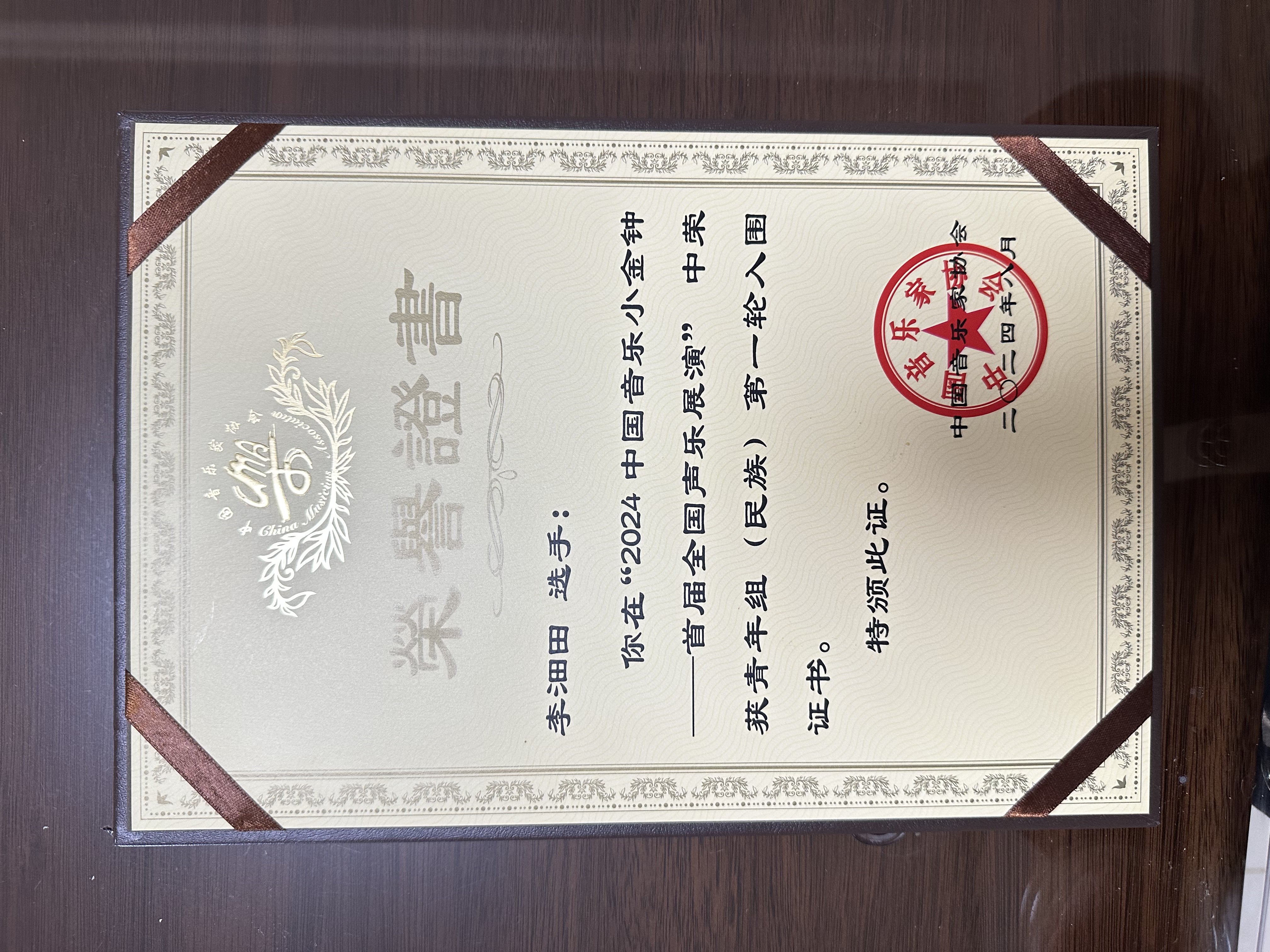 获奖名称:2024中国音乐小金钟首届全国声乐展演