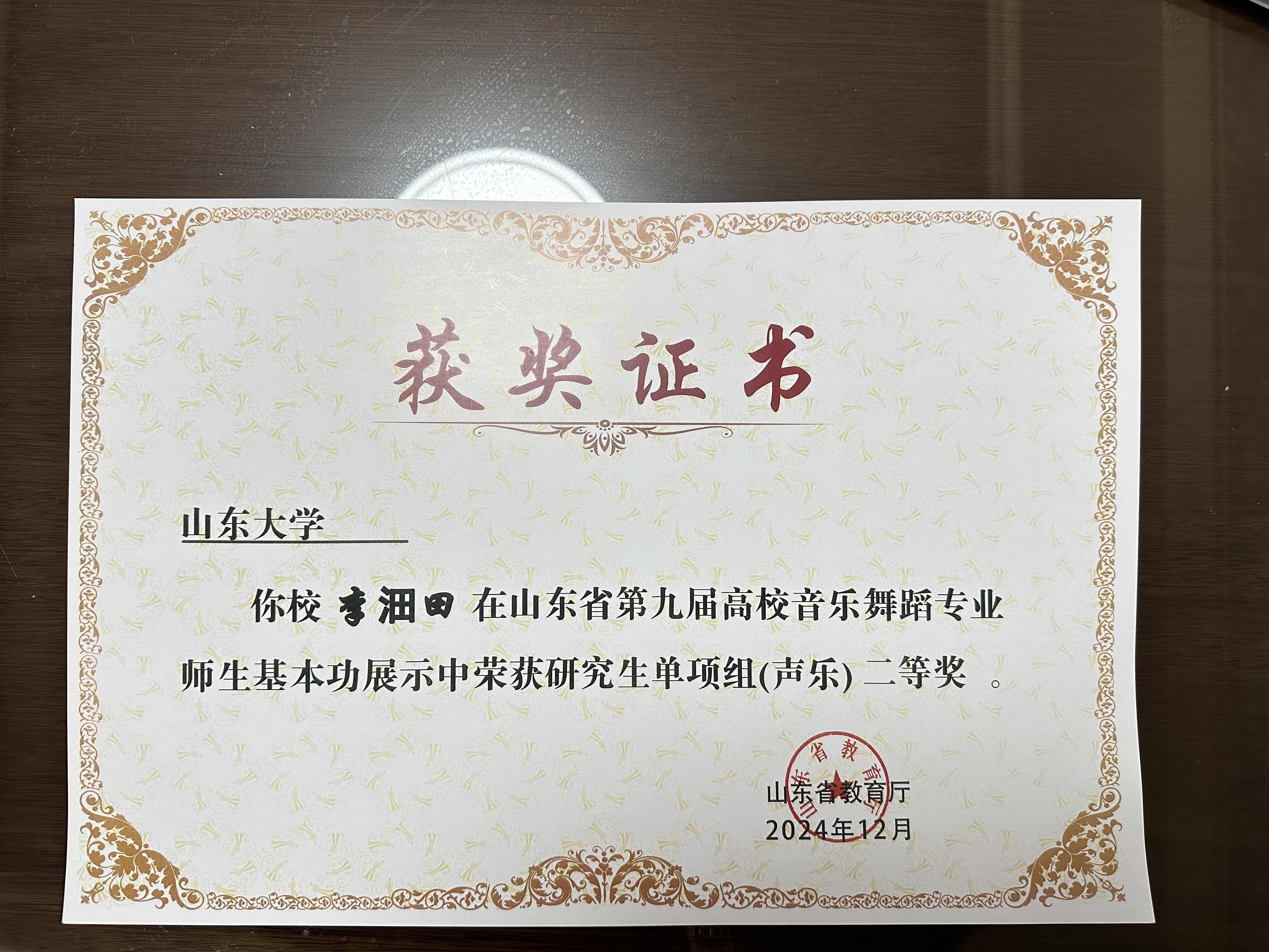 获奖名称:山东省第九届高校音乐舞蹈专业师生基本功展演