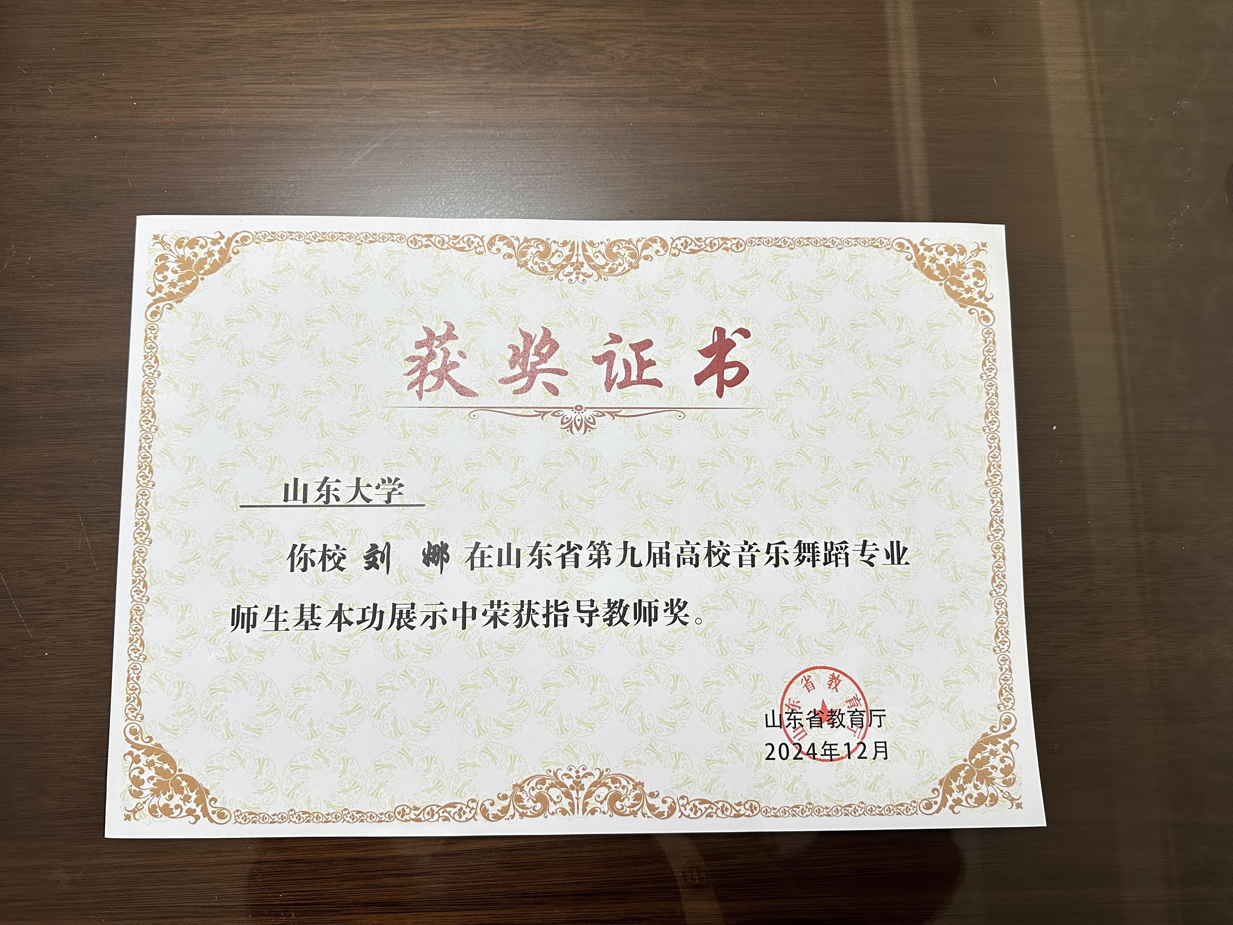 获奖名称:山东省第九届高校音乐舞蹈专业师生基本功展演