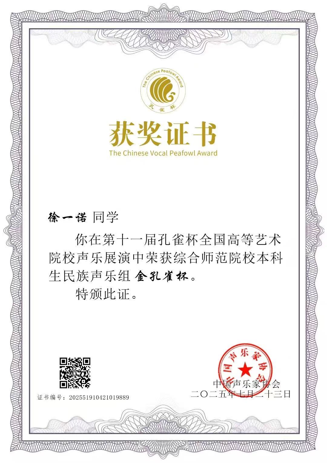 获奖名称:第十一届孔雀杯全国高等艺术院校声乐展演