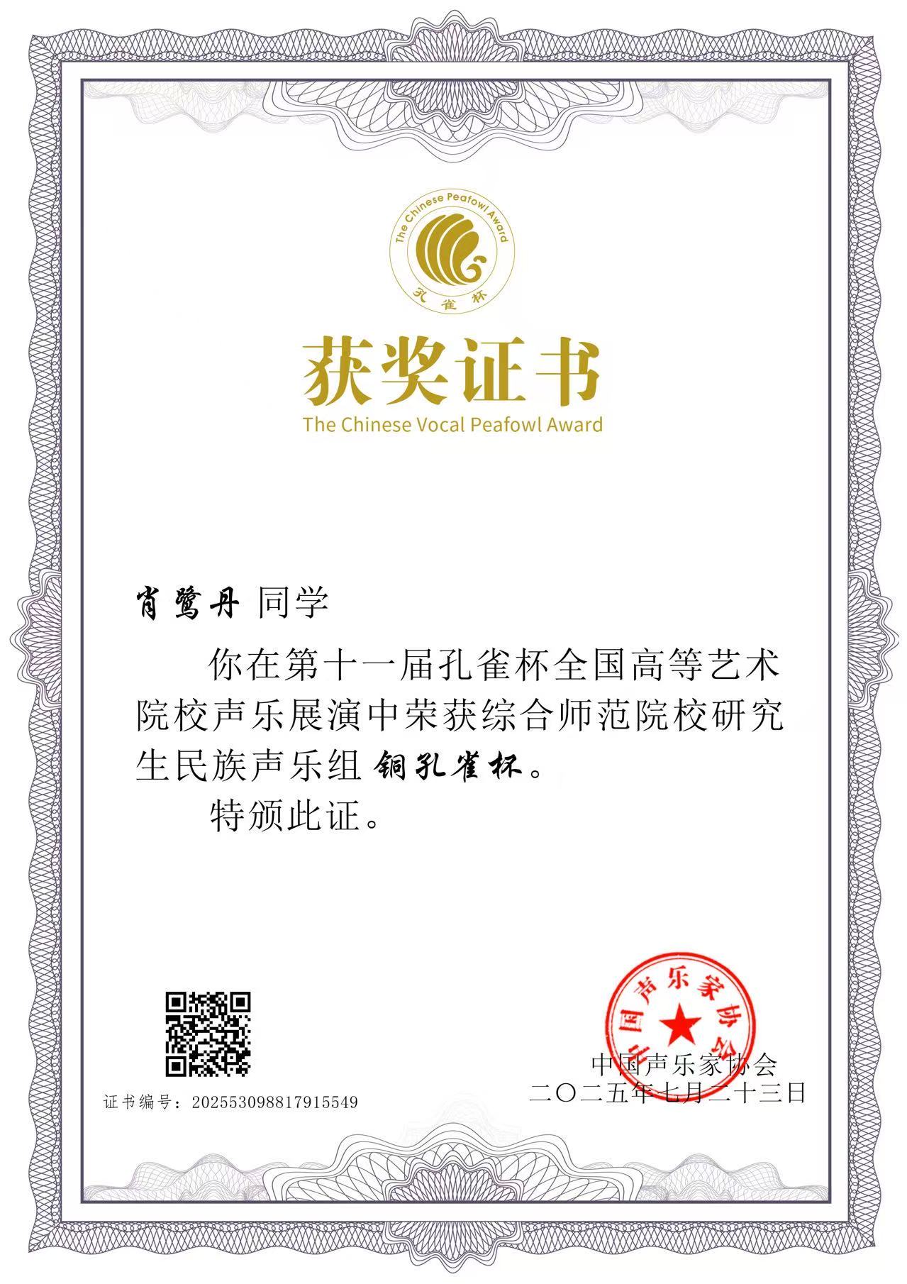 获奖名称:第十一届孔雀杯全国高等艺术院校声乐展演