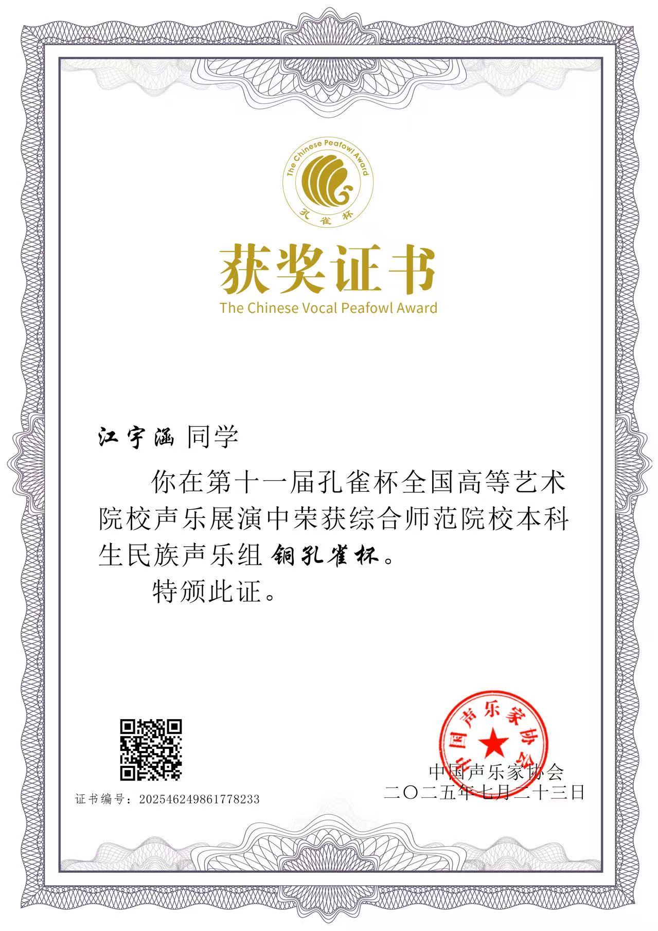 获奖名称:第十一届孔雀杯全国高等艺术院校声乐展演