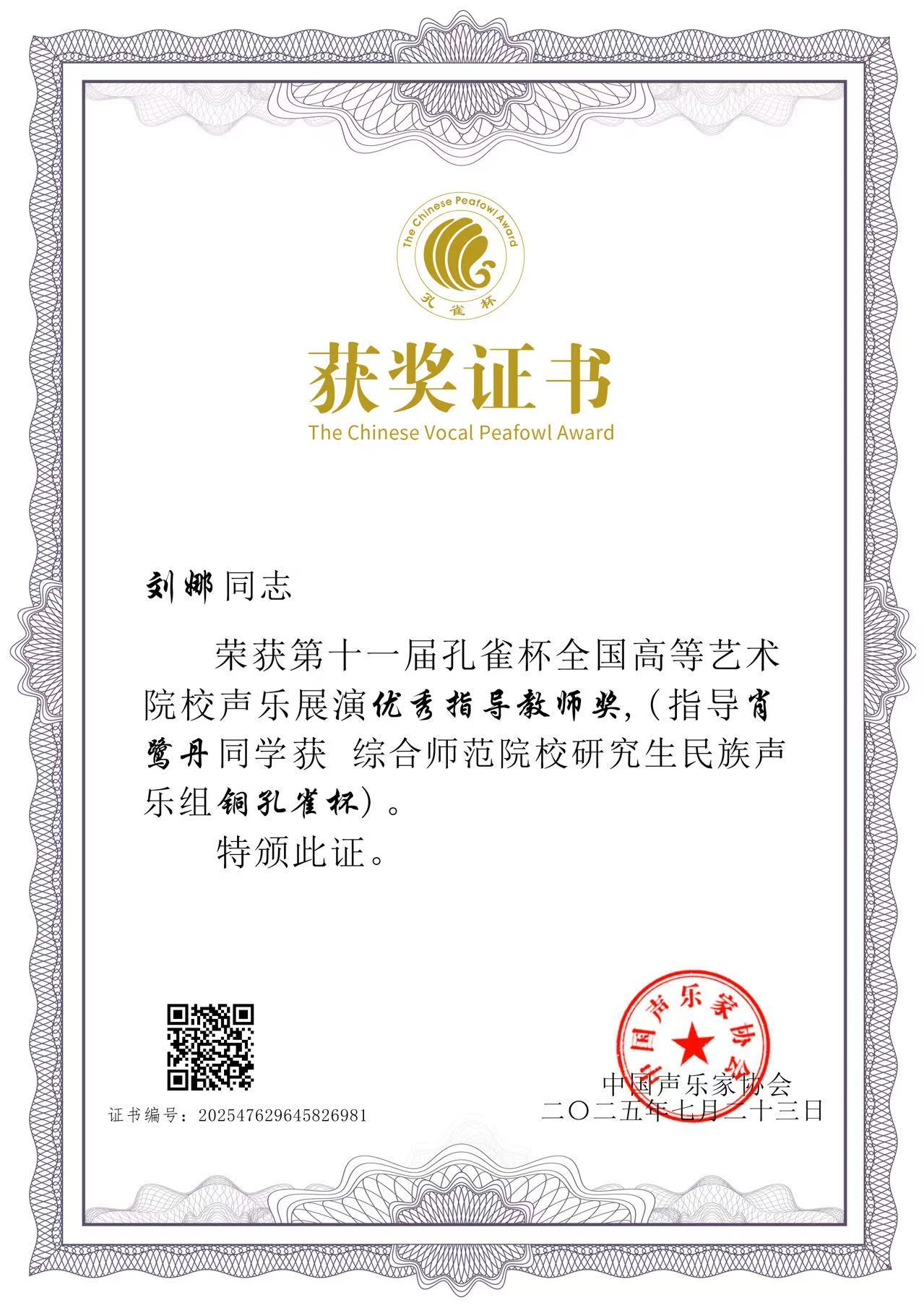 获奖名称:第十一届孔雀杯全国高等艺术院校声乐展演
