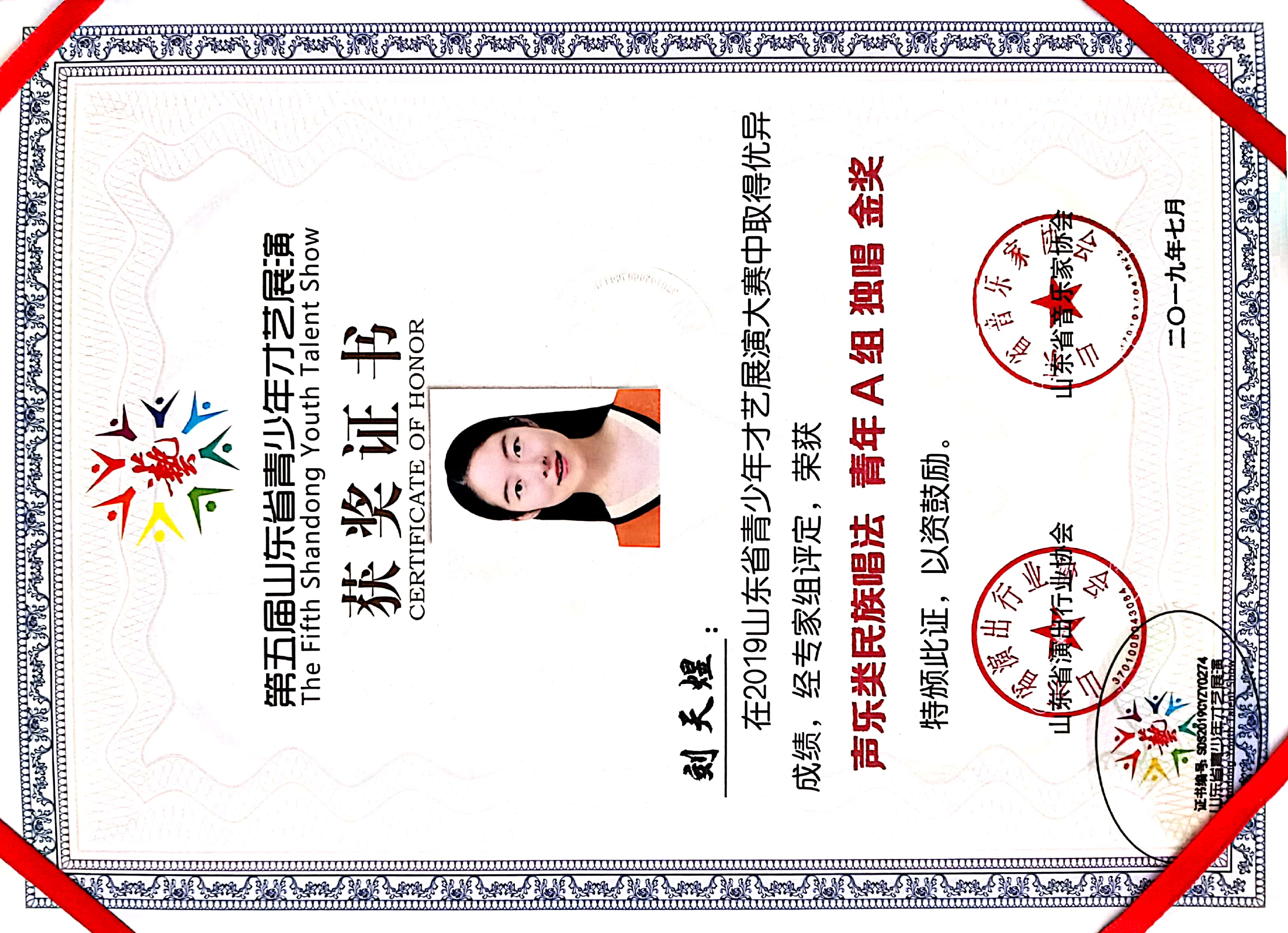 获奖名称:2019第五届山东省青少年才艺展演