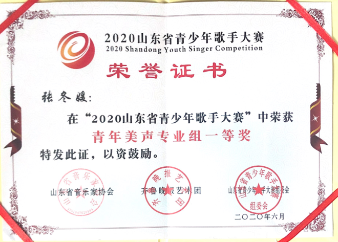 获奖名称:2020山东省青少年歌手大赛
