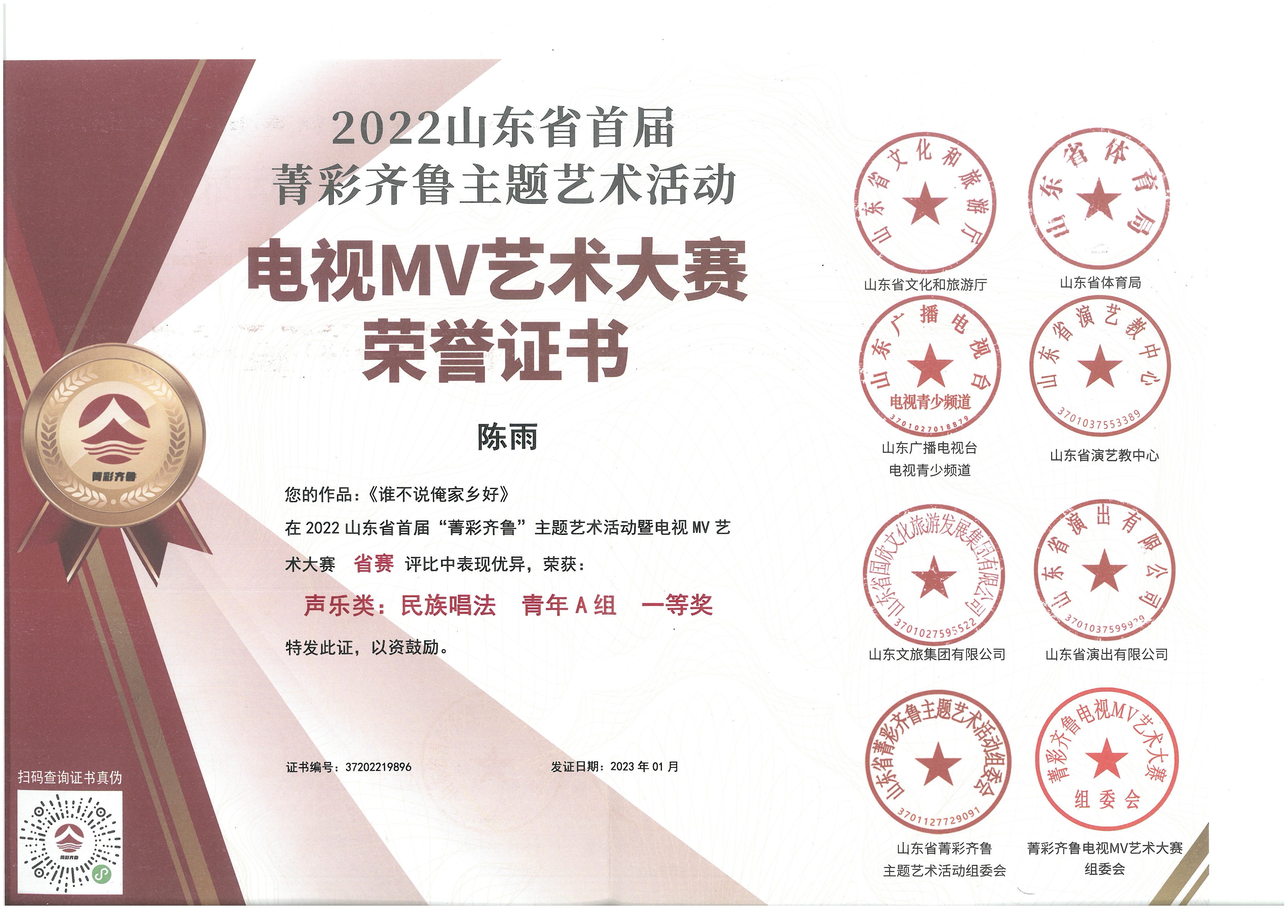 获奖名称:2022年山东省首届菁彩齐鲁主题艺术活动