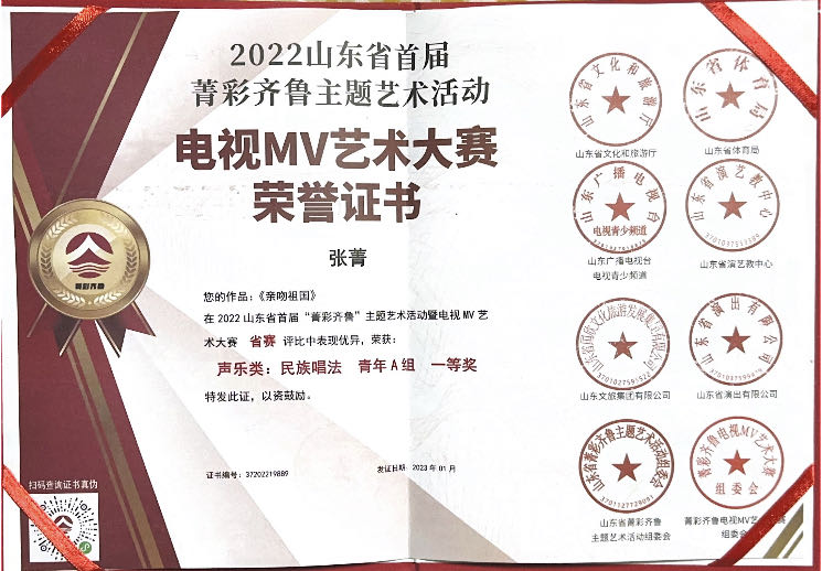 获奖名称:2022年山东省首届菁彩齐鲁主题艺术活动