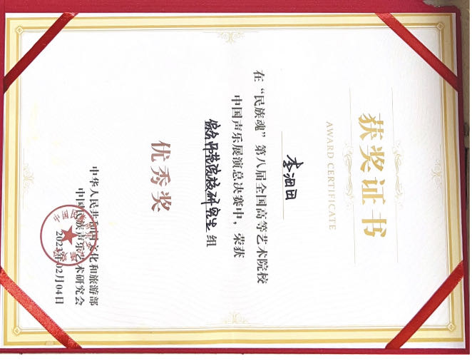 获奖名称:“民族魂”第八届全国高等艺术院校声乐展演