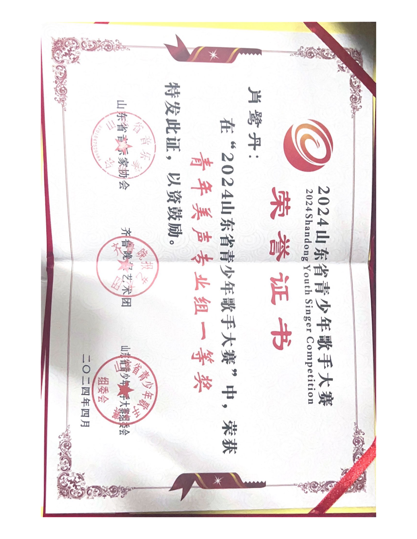 获奖名称:2024山东省青少年歌手大赛