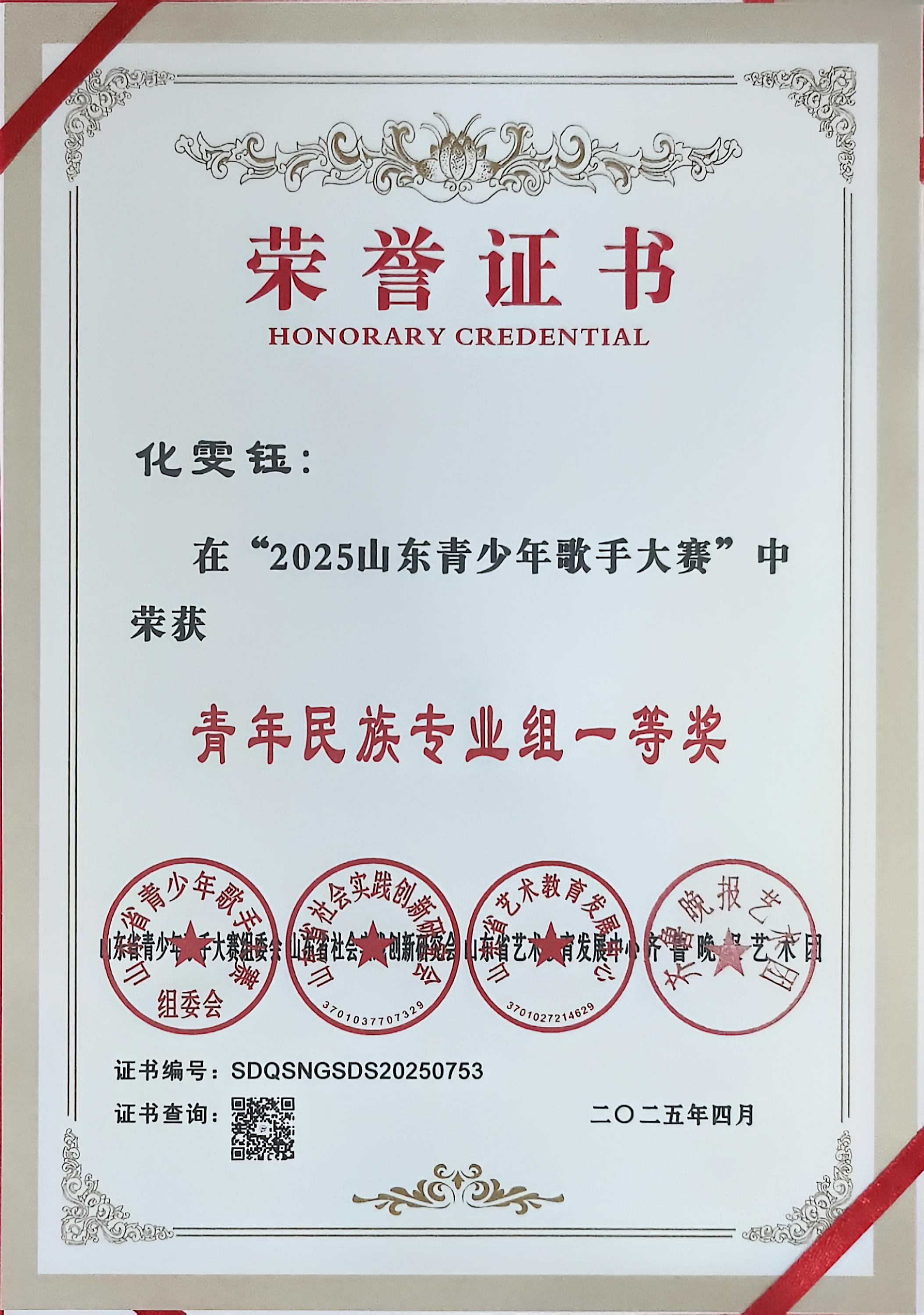 授奖部门:山东省青少年歌手大赛组委会、山东省社会实践创新研究会