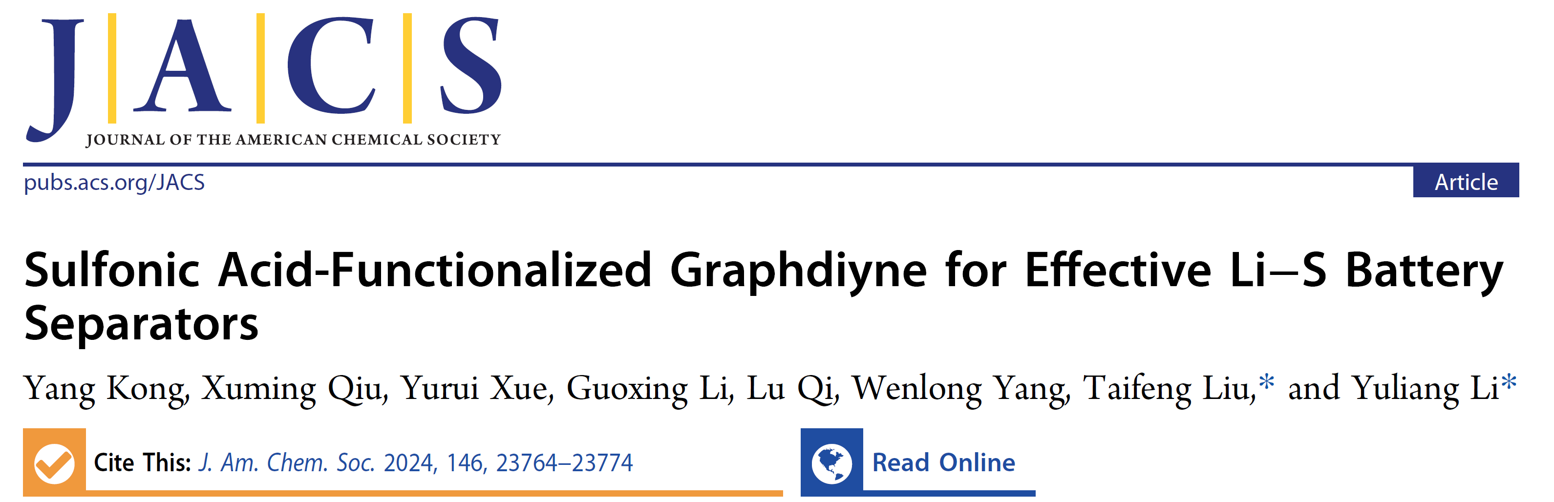 论文名称:Sulfonic Acid-Functionalized Graphdiyne for Effective Li−S BatterySeparators