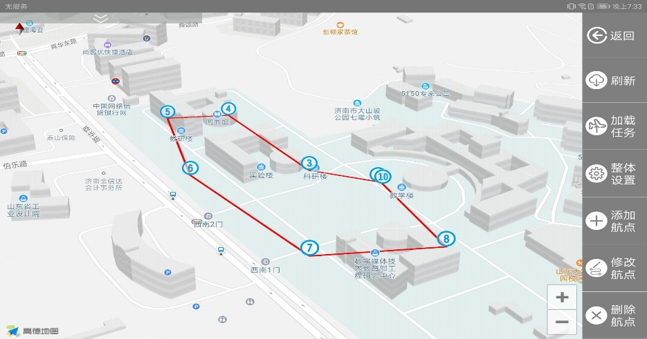在任务列表页面点击“查看”进入飞行任务详情界面,可对后台设定的无人机航线进行增删改查,并可将任务数据加载到无人机上,任务详情界面如下: