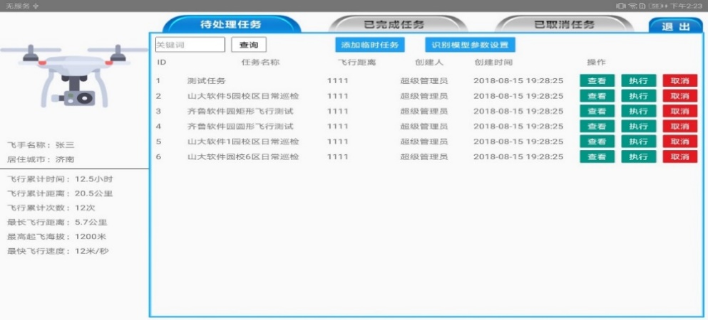 对于无人机相关的基本信息,该管理系统提供基本的查看、添加、编辑、删除、搜索功能,界面如下图所示: