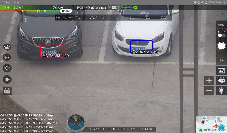 在App的图像回传界面,用户可点击左侧识别按钮,选择想要识别的目标物体,开启识别线程,对回传图像进行实时识别。目前已实现了对基本物体的识别和对车牌的识别,识别效果图如下: