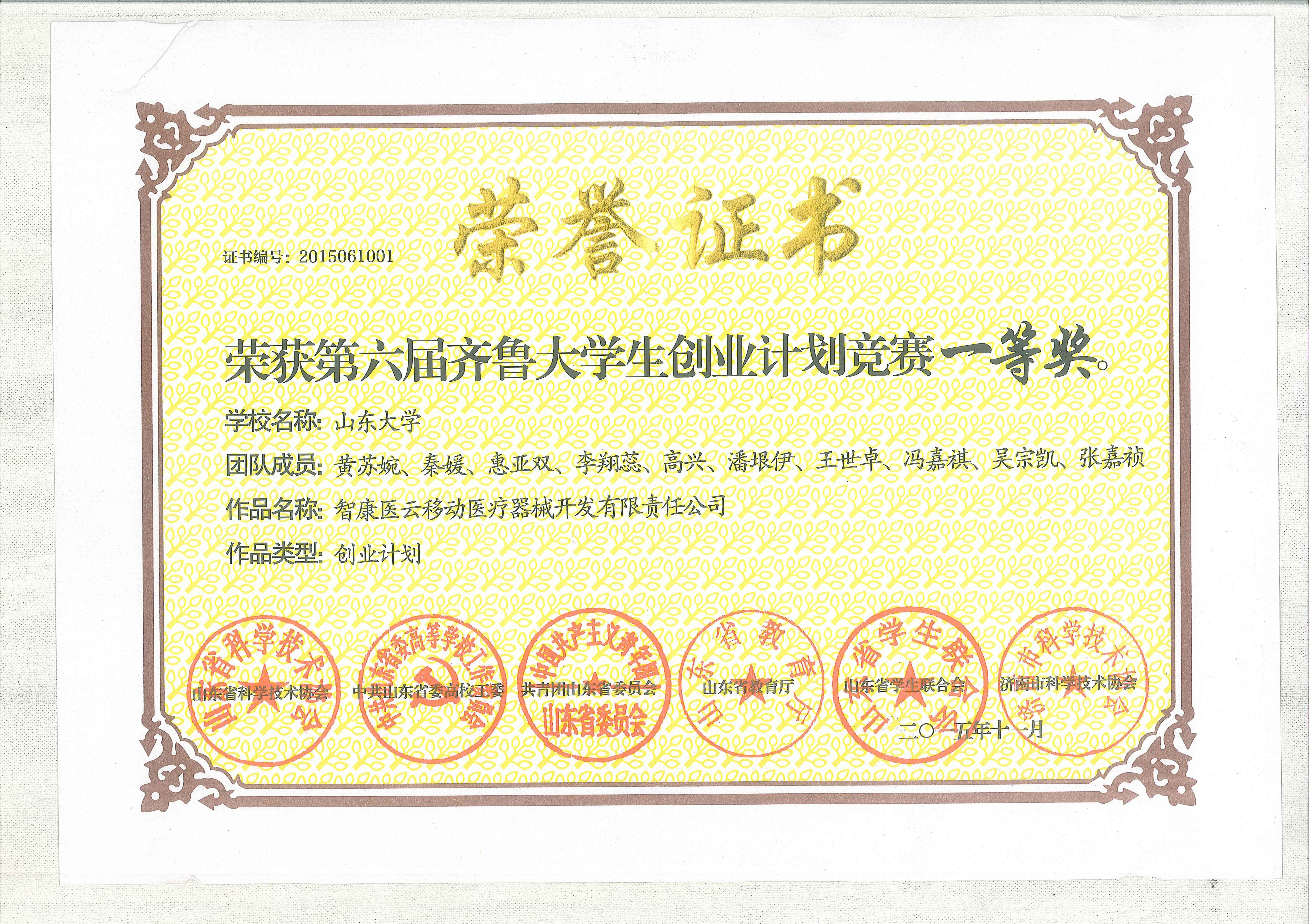 教学成果名称:第六届齐鲁大学生创业计划竞赛一等奖