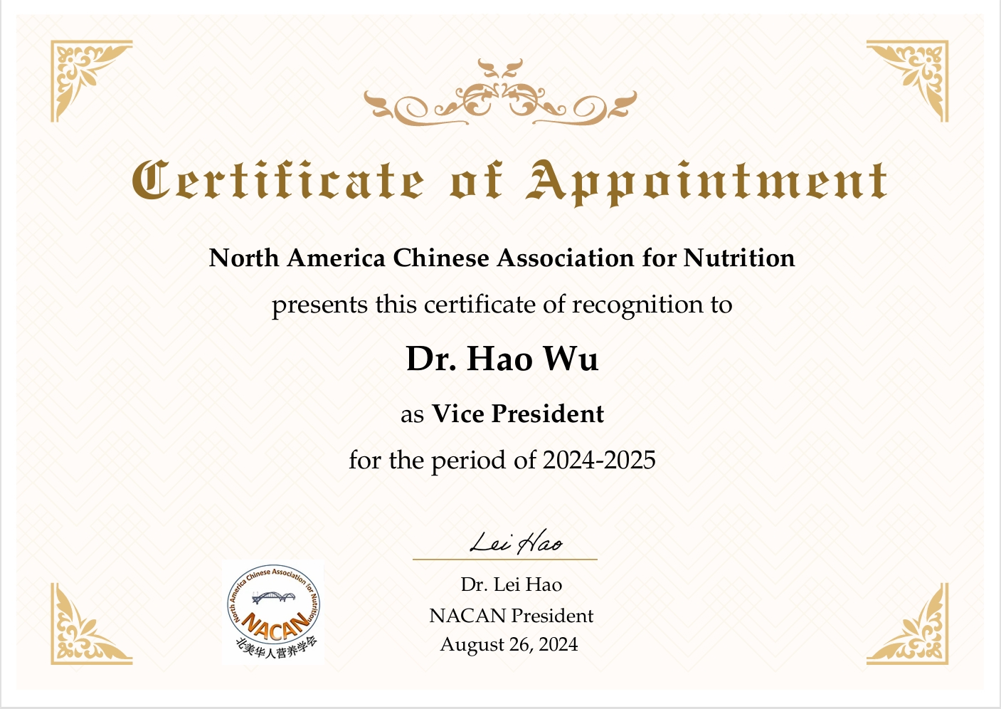 2023级硕士生 导师:吴昊教授 研究方向:急性食物中毒的分子机制和营养学干预;糖尿病的分子机制和营养学干预