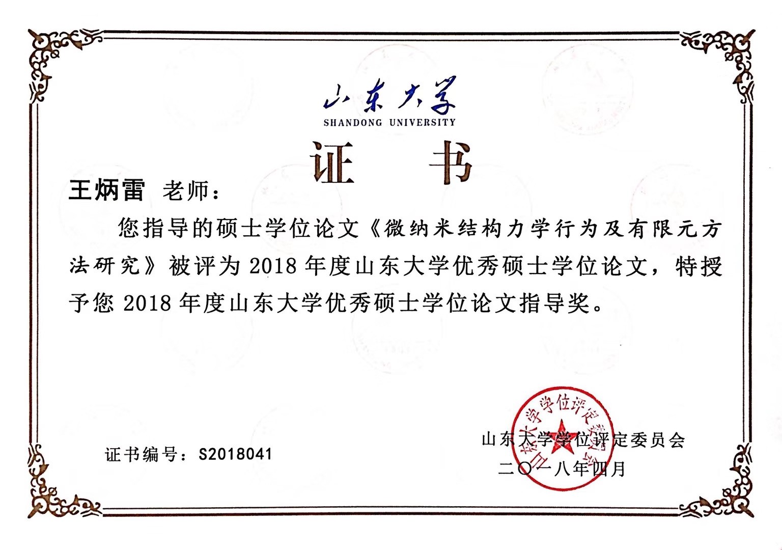 Title of Award:山东大学优秀硕士学位论文指导奖