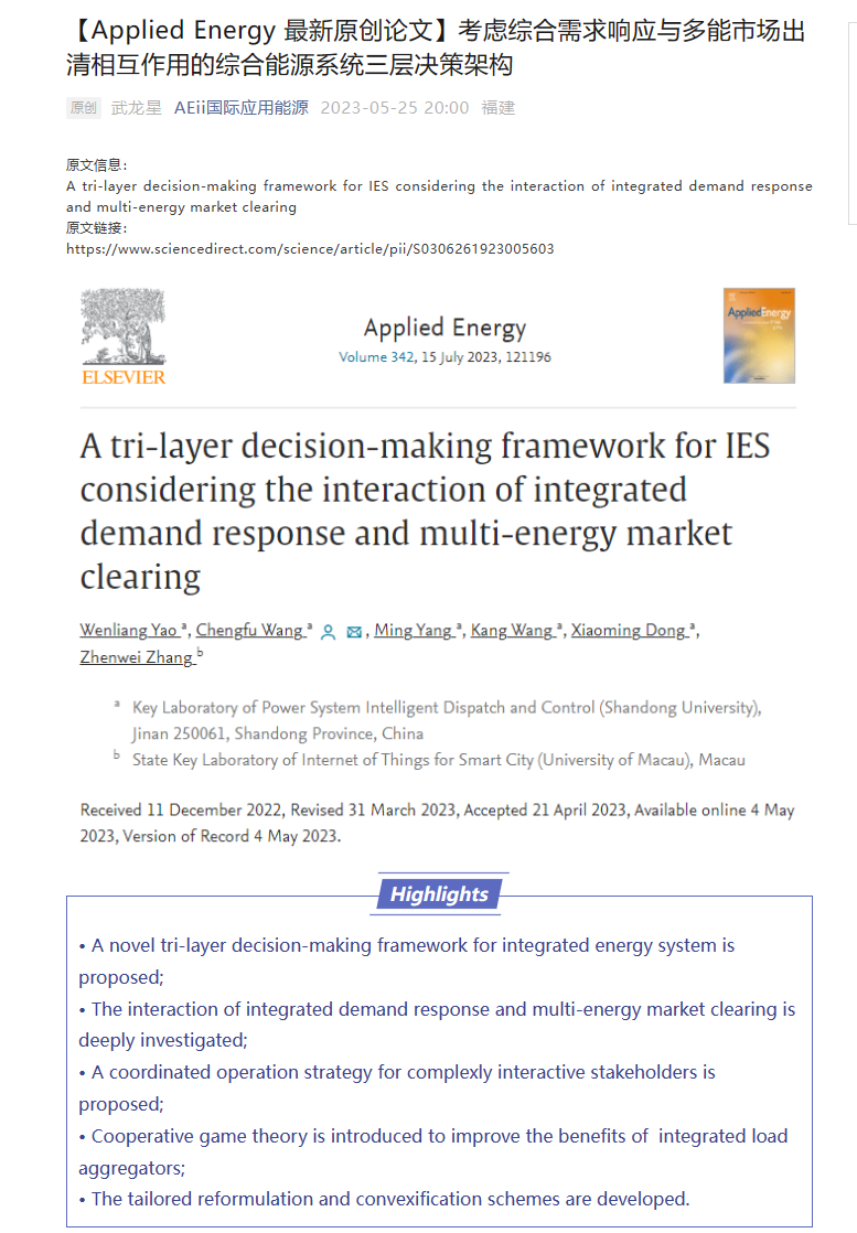 【Applied Energy 最新原创论文】