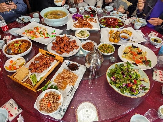 本次团建地点是淄博红叶柿岩旅游区,早上9.30大家在北院南门集合乘坐大巴出发,中午11点多到达目的地附近,大家一起吃了丰盛又著名的博山菜,吃完午餐前往红叶柿岩。
