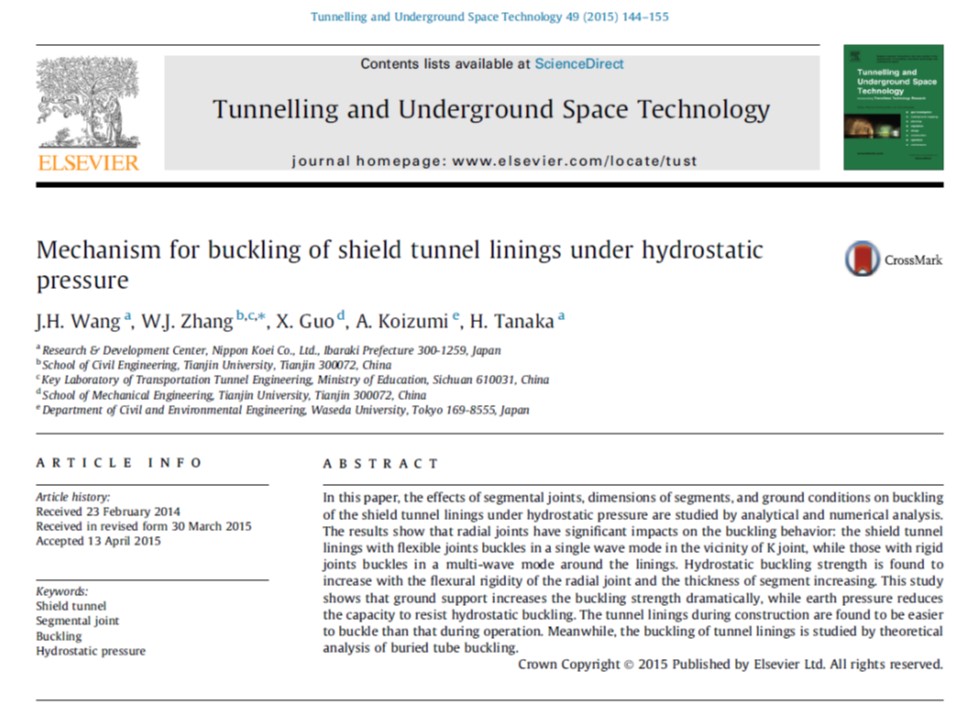 Wang J. H., Zhang W. J., et al. (2015). Mechanism for buckling of shield tunnel linings under hydrostatic pressure. Tunnelling and Underground Space Technology, 49, 144-155.