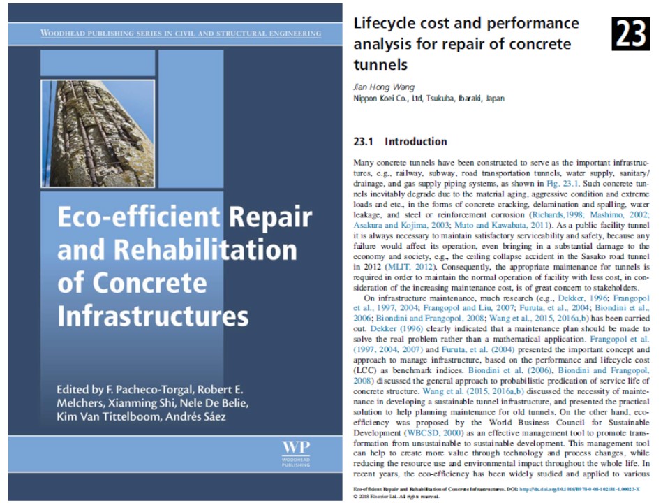 Jian Hong Wang, 23 - Lifecycle cost and performance analysis for repair of concrete tunnels, Editor(s): F. Pacheco-Torgal, Robert E. Melchers, Xianming Shi, Nele De Belie, Kim Van Tittelboom, Andrés Sáez, In Woodhead Publishing Series in Civil and Structural Engineering, Eco-Efficient Repair and Rehabilitation of Concrete Infrastructures, Woodhead Publishing, 2018, Pages 637-672, ISBN 9780081021811。