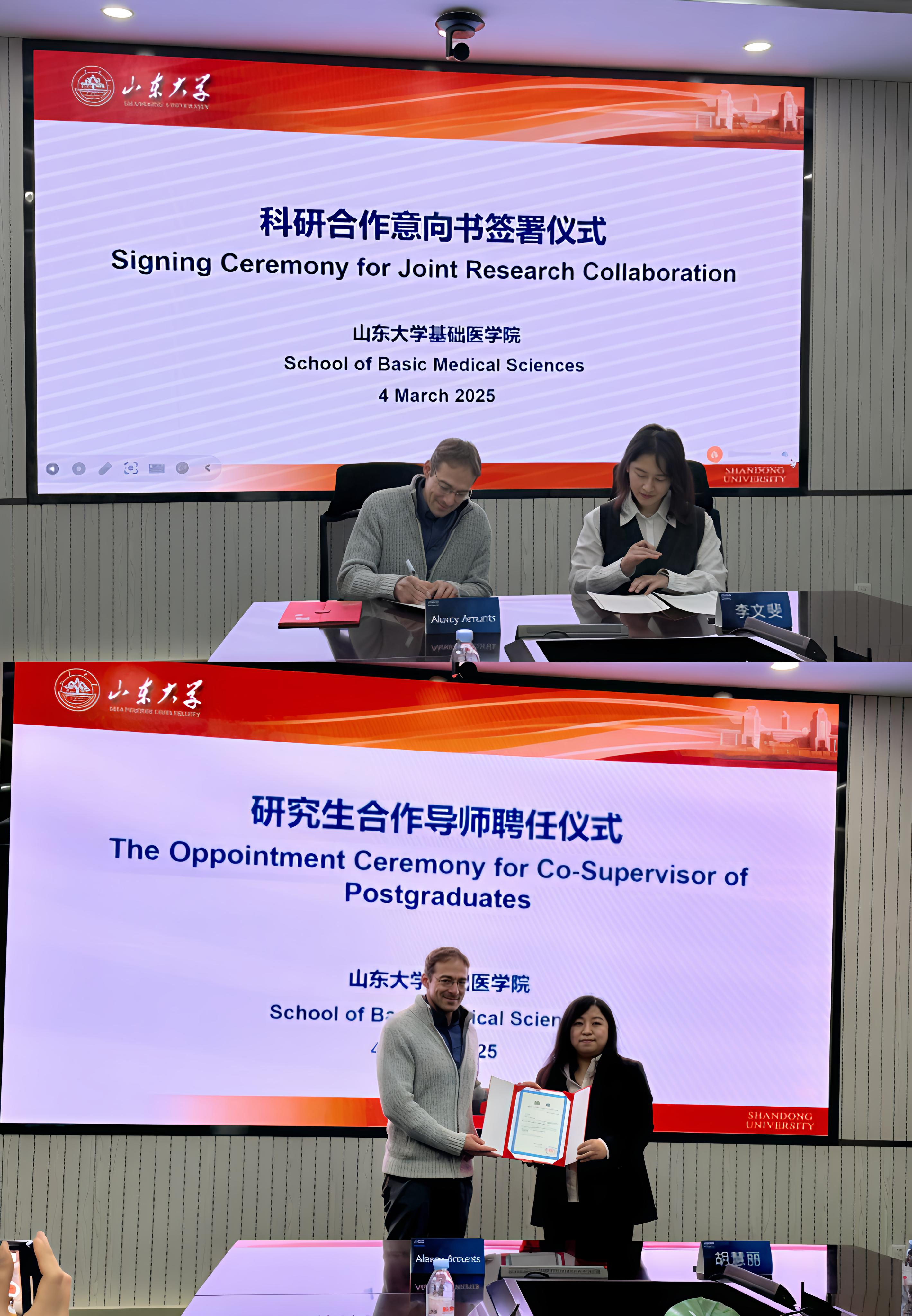 3月4日,基础医学院举行研究生合作导师聘任暨科研合作意向书签字仪式,国际顶尖研究——马克思普朗克研究所(大名鼎鼎的 马 普 所)Alexey Amunts教授受聘为我们实验室的研究生合作导师(我们是有两个导师指导学术的)。