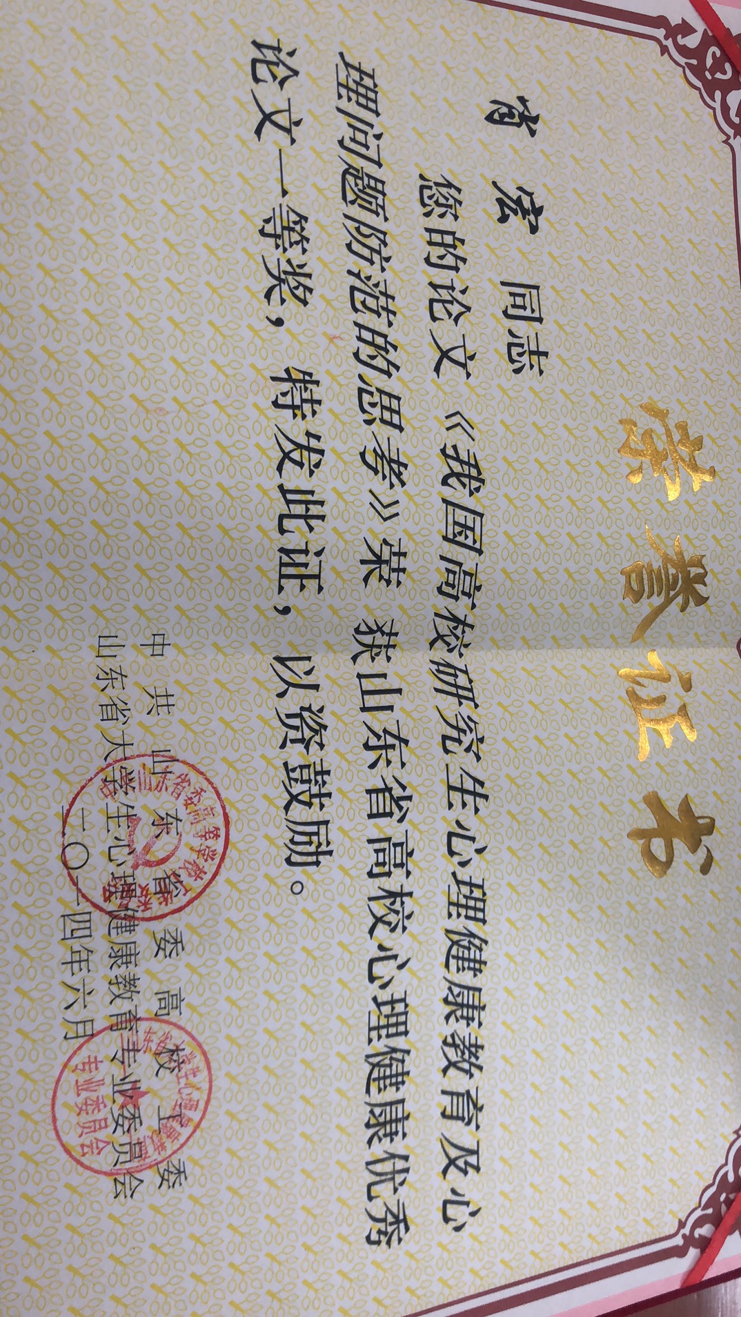 授奖部门:中共山东省委高校工委、山东省大学生心理健康教育专业委员会