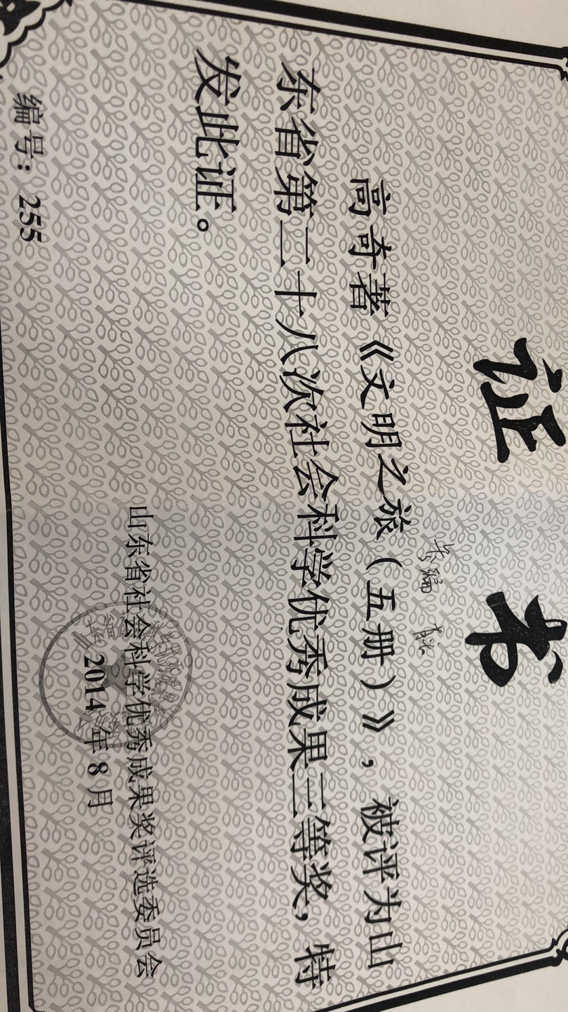 授奖部门:山东省社会科学优秀成果奖评选委员会