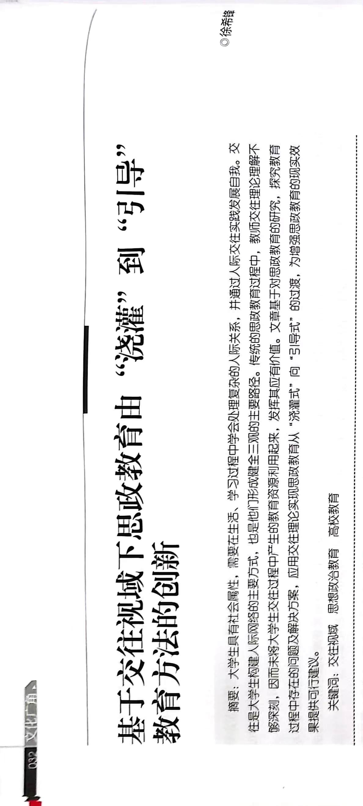 Title of Paper:基于交往视域下思政教育由“浇灌”到“引导”教育方法的创新