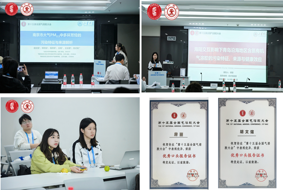 课题组2023级硕士研究生房丽和2025级硕士研究生胡文煊参加第十五届全国气溶胶大会,并均荣获“优秀口头报告奖”!(*^▽^*)