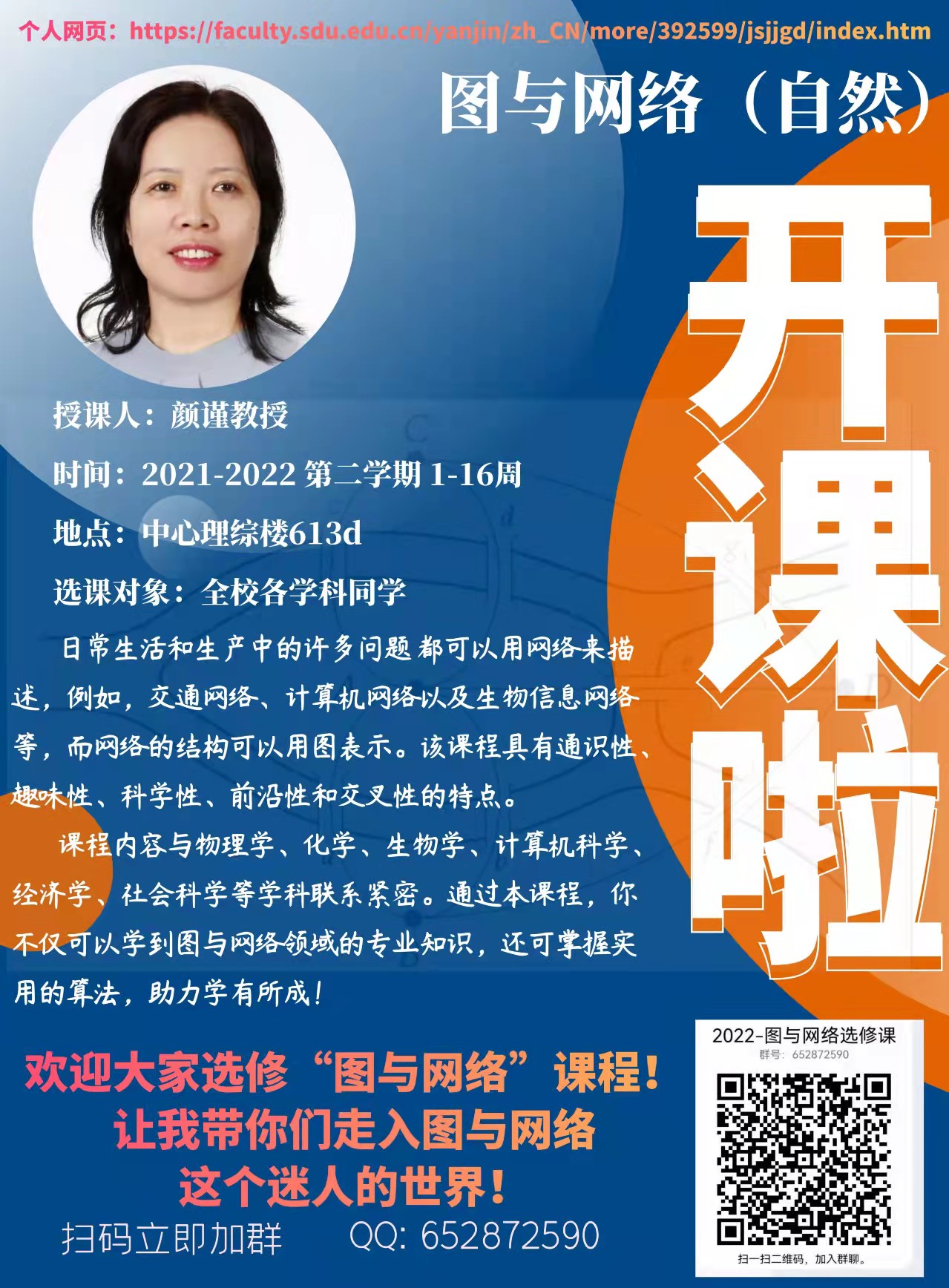 让我带你们进入这个迷人的世界!日常生活中和生产中的许多问题都可以用一个网络来描述,例如,交通网络、计算机网络、工程进度网络、生物信息网络以及互联网等。而网络通常可以用一个图来表示。在图中我们用点表示对象,两点之间的连线表示对象之间的某种特定关系,具有形象直观的特点。该课程具有通识性、趣味性、科学性、前沿性和交叉性的特点。课程内容与物理学、化学、生物学、计算机与软件科学、经济管理科学、社会学等关系密切,通过本课程,不仅可以学到图与网络领域的专业知识,还可掌握实用的算法,助力学有所成!
