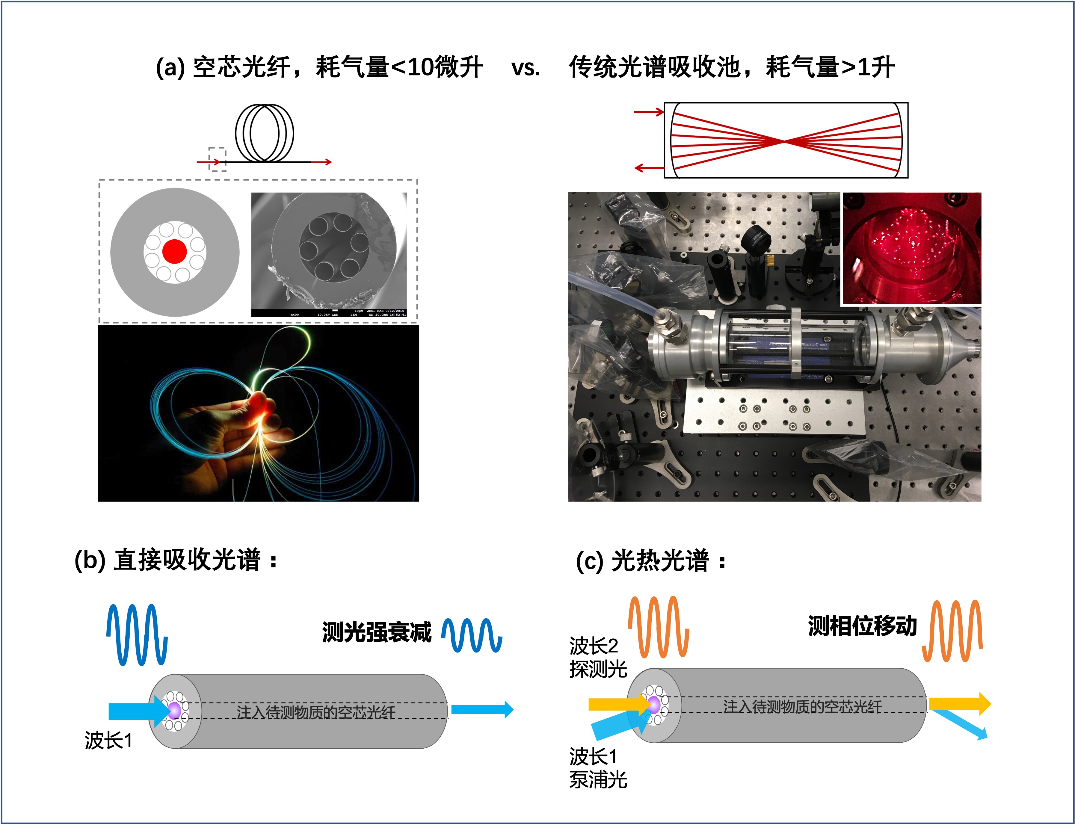 基于空芯光纤的光学气体传感示意图