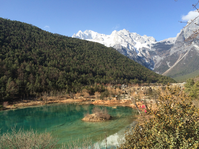 第三天,丽江。根据导游阿黑哥介绍,目前玉龙雪山实行预约登顶制度,防止游客过度拥挤。为此,早上7点到达冰川大索道入口,排队第一拨登山。这是我乘坐过时间最长的索道,山脚下海拔3400米,索道顶端海拔4600米,近20分钟里索道爬升垂直距离1000多米,期间耳朵因为负压不断被堵,只好闭住口鼻用力呼气把耳膜恢复,压缩氧气更是罐不离手,索道轿厢时快时慢,过程真是非常刺激。索道到达海拔4600的平台,此时阳光初升,白雪反射着阳光,把雪山映衬得更加壮美,可惜美中不足,白云略少没能看到1米阳光。从平台有栈道通往更高的观光平台,那是《极限挑战》登顶的录制现场。稍稍尝试登顶,发现有些困难,为了下午的行程最终还是决定放弃登顶。如果再年轻二十年,这点台阶还是难不住的嘛!从雪山原路索道返回,在雪山脚下剧场观看《印象丽江》。之前导游对《印象丽江》是一通黑,因此心里真没有报太大期望,没想到演出还有点意思:背景是真实的玉龙雪山,舞台是红土造型的立体平台,骑得是真正的骡马,演员更是本色出演,不用麦克的原生态呐喊与歌唱,“这才是正宗的民族味啊”!我立刻路转粉了。随后乘车来到附近的蓝月谷。谷内潭水像极了九寨,青山绿水白云黑土,几种色彩柔和的是那么协调,多盼望能在这儿多停留会儿。接下来束河古镇和螺旋藻中心就是购物地点,没什么兴趣。午饭后才被带到的另一重要地点——丽江古镇。来云南之前曾经设想了好多,漫步丽江,迷路在古镇中,随意找间酒吧听听民谣,喝喝小酒……可理想很丰满现实很骨干!由于路上导游强烈推荐大型演出《丽江千古情》,忍不住掏了280报名。而演出是远在郊区的宋城,演出专车发车时间是固定的,这样给我们在丽江古镇的时间只有……半个小时!而看完演出,吃完晚饭已经晚上10点,这个点泡吧虽然正好,但别忘了第二天还要早起去海拔3000米的香格里拉啊!于是乎,丽江古镇,再见!当晚真是哭昏在厕所啊!话说回来,《丽江千古情》的确也不错,灯光绚丽、舞蹈唯美、剧情写意、意境悠远,演员和道具各种的吊威亚,空中飞来飞去,可……怎么好像缺少点原生态的感脚啊!