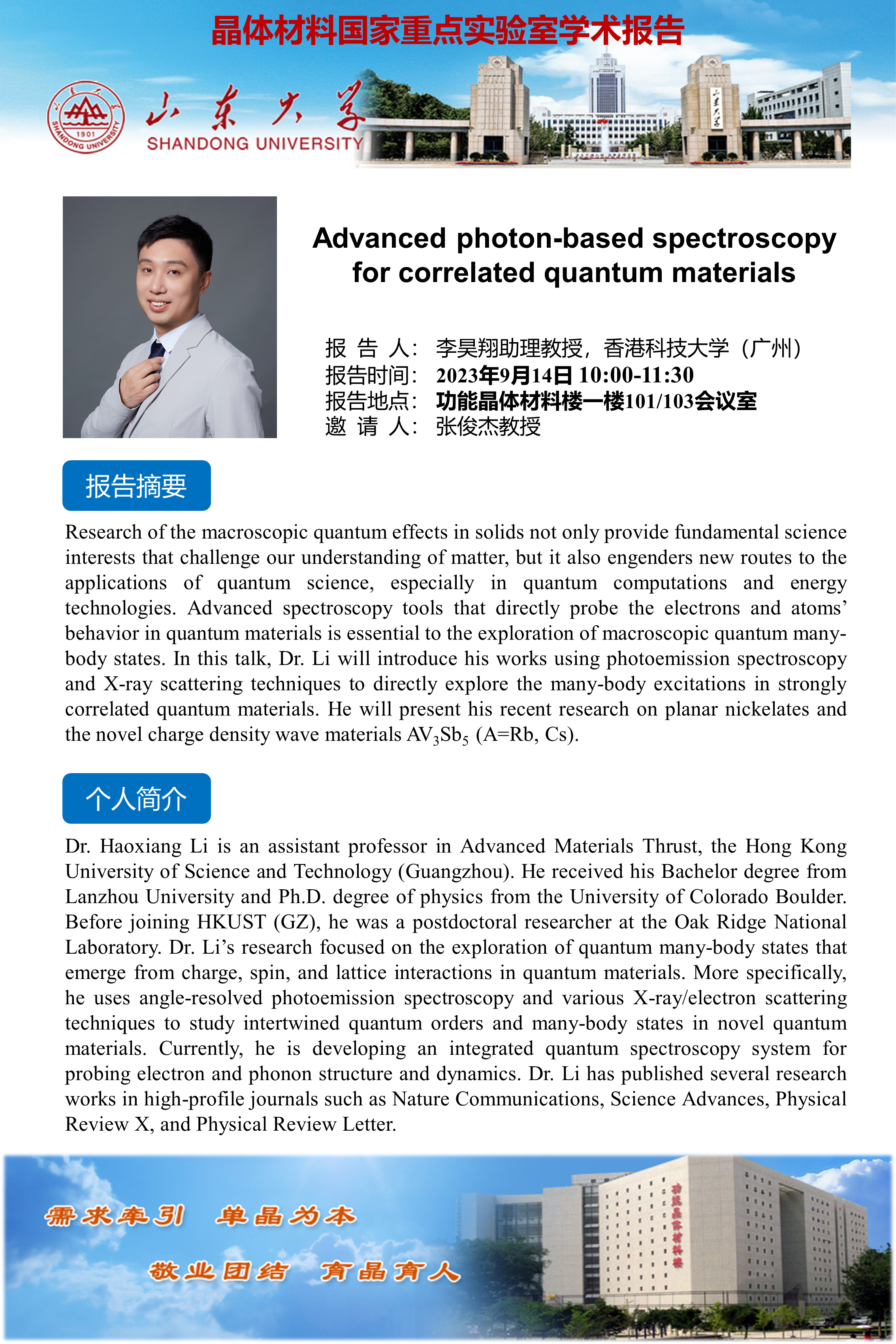香港科技大学(广州)李昊翔教授到晶体材料国家重点实验室学术交流