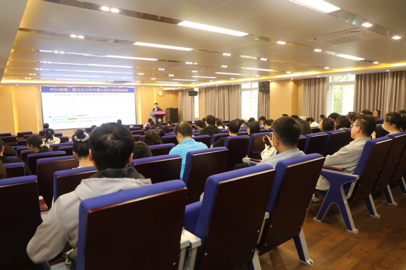 报告中,展鹏教授首先为大家介绍了近年来抗病毒药物研究进展,并结合其研究经历分享了新一代抗耐药性抗艾滋病候选药物的发现、新一代抗耐药性抗流感候选药物的发现、基于新靶标的抗病毒药物先导化合物的发现和新型高效抗痛风候选药物的发现历程。接着,展教授跟大家分享了其课报告会现场题组近年来的代表成果,研究涉及抗艾滋病药物、抗流感药物、抗冠状病毒药物和抗痛风药物的开发。内容前沿,紧扣需求,思路独特,信息量大,启发性强。其中抗艾滋病候选药物和抗痛风候选药物均得到企业投资,规范的临床前评价正在有条不紊地推进中。