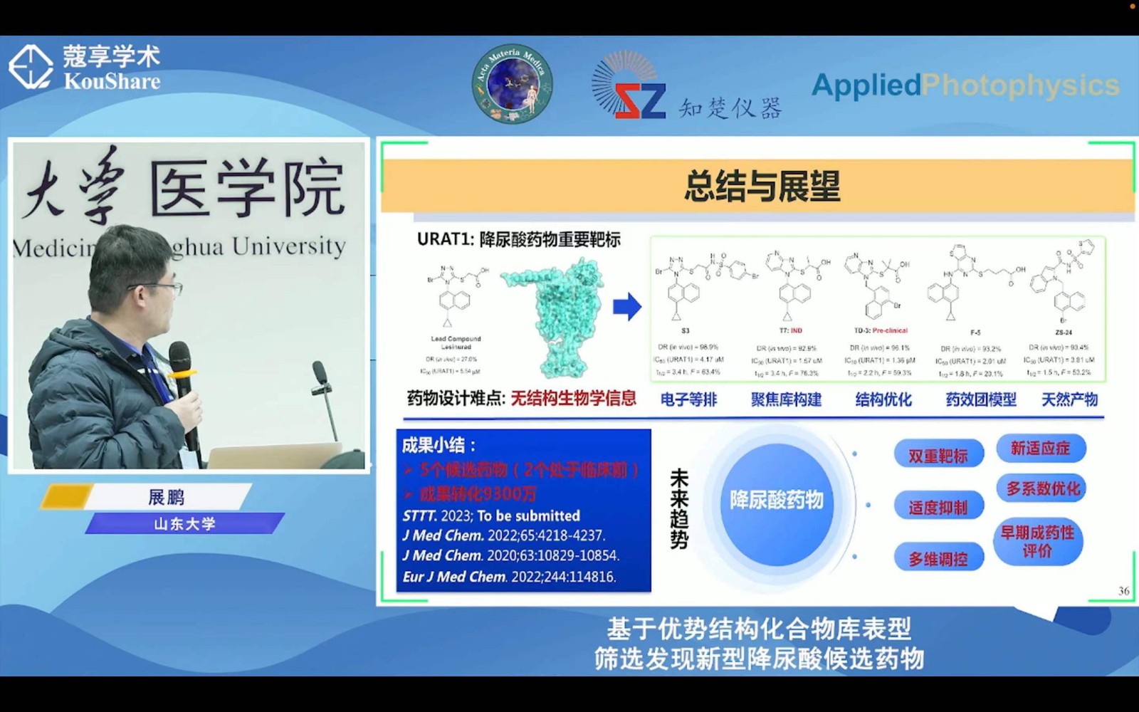 博客标题:2024年1月13日,展鹏教授参加AMM杂志创刊两周年暨第二届"我药发现"国际创新药物研发高峰论坛,并作题为基于优势结构化合物库表型筛选发现新型降尿酸候选药物的学术报告。