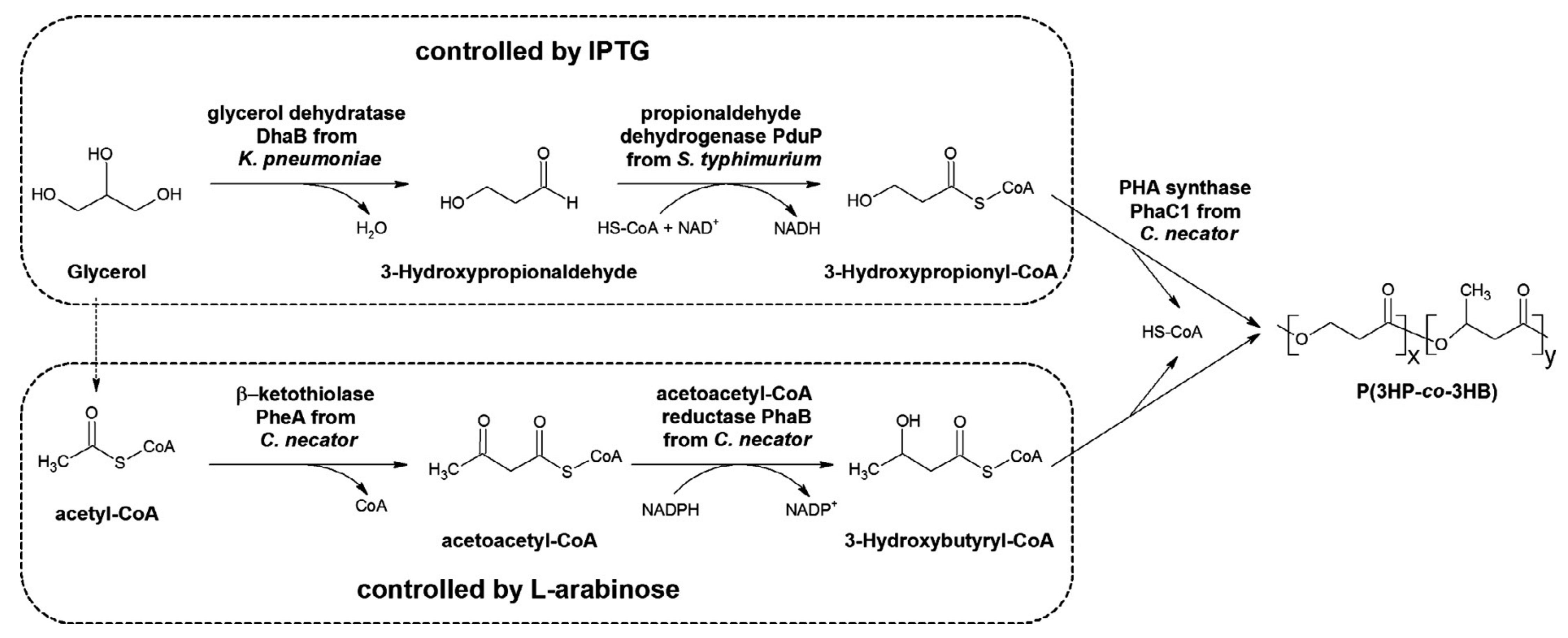 Biosynthesis of Poly(3-hydroxypropionate-co-3-hydroxybutyrate) with fully controllable structures from glycerol