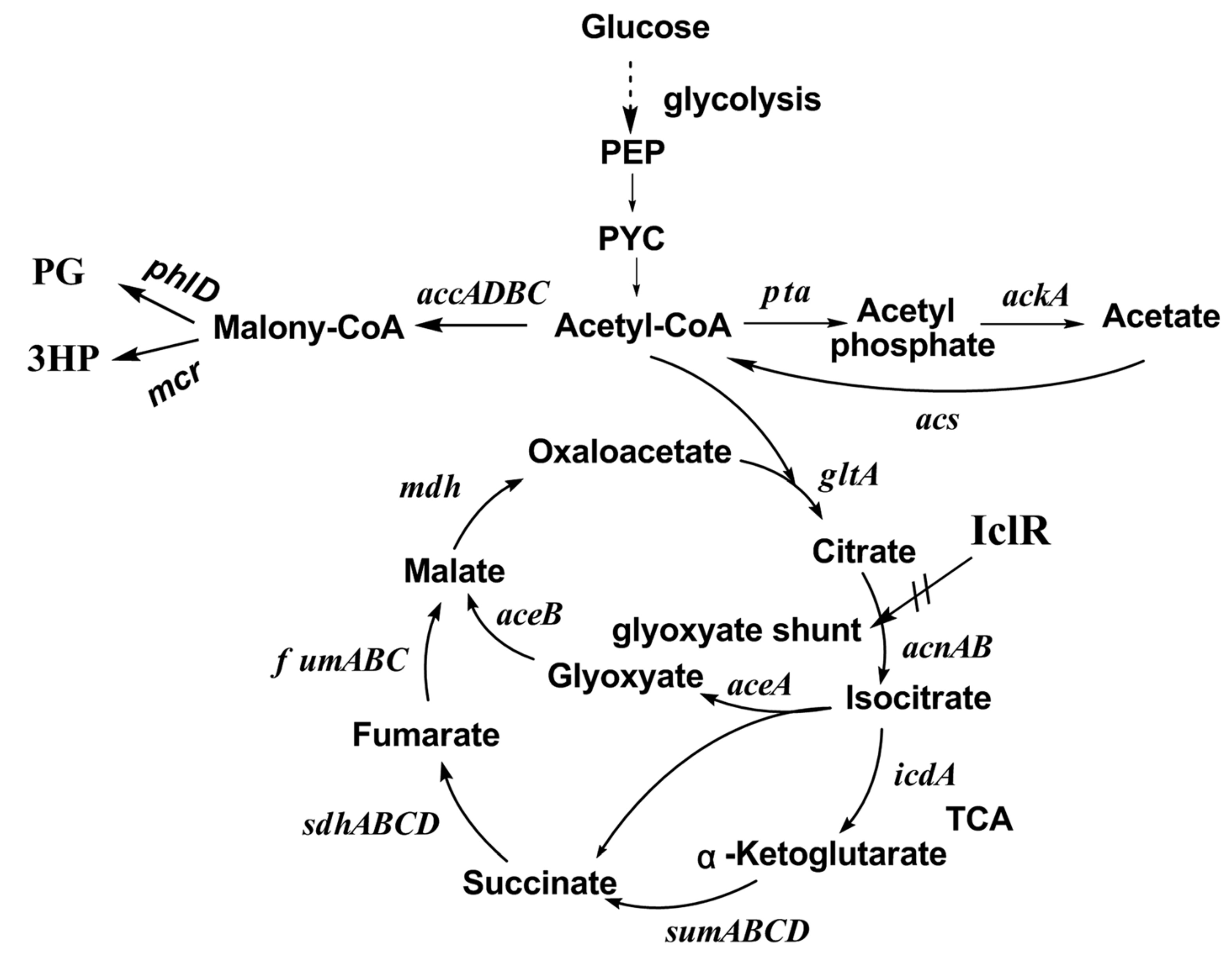 Improving the production of acetyl-CoA-derived chemicals in Escherichia coli BL21(DE3) through iclR and arcA deletion