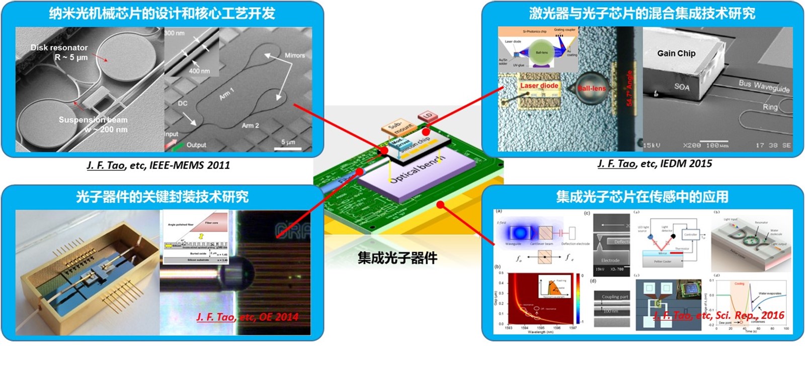 继光学MEMS技术之后,基于纳米光机械系统(Nano-Opto-Mechanics System,NOMS)技术获得越来越多的重视。通过在毫米尺寸的硅基芯片上,集成激光器、探测器、多种无源光器件、机械敏感结构等,构建高效率的纳米光机械耦合系统,用于设计高精度微机械/微光学传感器芯片。本方向重点研究:抗冲击惯导芯片、片上光谱分析芯片、片上病毒检测等医疗和工业领域的片上集成光子芯片技术。